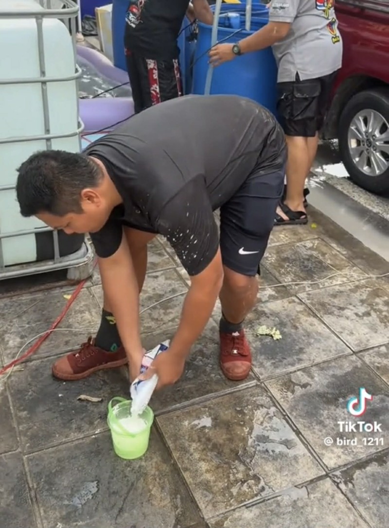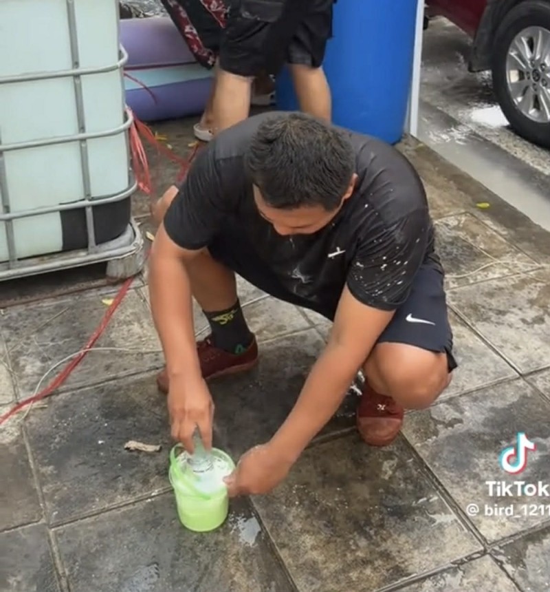 โดย ต้นเรื่องมาจากคลิปในงานสงกรานต์พระประแดง ที่เจ้าตัวหยิบถุงลักษณะคล้าย กาวยาแนว มาผสมน้ำ แล้วนำไปสาดใส่คนรอบข้าง ทำให้หลายคนกังวลเรื่องความปลอดภัยทันที