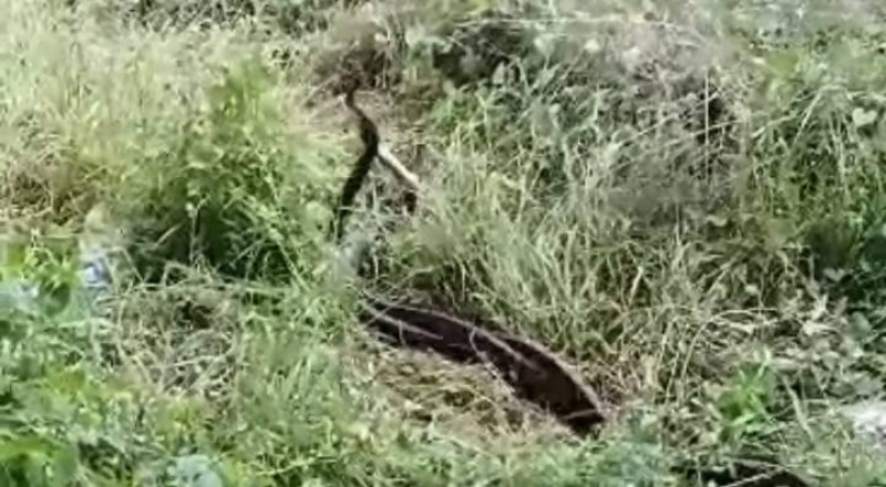 โดนเกี้ยวพันตัวกันอยู่นาน ไม่ยอมแยกออกจากกัน ระหว่างนั้นตนเองก็กลัวบาปเนื่องจากเห็นสัตว์ทั้งคู่กำลังรักกัน จึงได้ยืนดูอยู่นาน เนื่องจากรอให้งูทั้งสอง หยุดเกี้ยวกันก่อน แล้วค่อยหาวิธีลงมือจับแต่งูทั้งสองนั้นไม่ยอมเลิก ได้เกี้ยวพันตัวกันต่อ ตนเองก็ยืนเฝ้าอยู่บริเวณนั้นเป็นเวลานาน