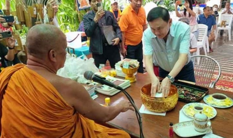วันนี้ที่ท่านเดินทางมา ก็มาพูดคุยสนทนาธรรมกับอาตมา พร้อมมอบเงินจำนวน 200,000 บาท กับสิ่งของเครื่องใช้จำนวนหนึ่ง ให้กับทางวัด อาตมา ก็ขออนุโมทนาสาธุในผลบุญครั้งนี้กับอดีตนายกทักษิณด้วย