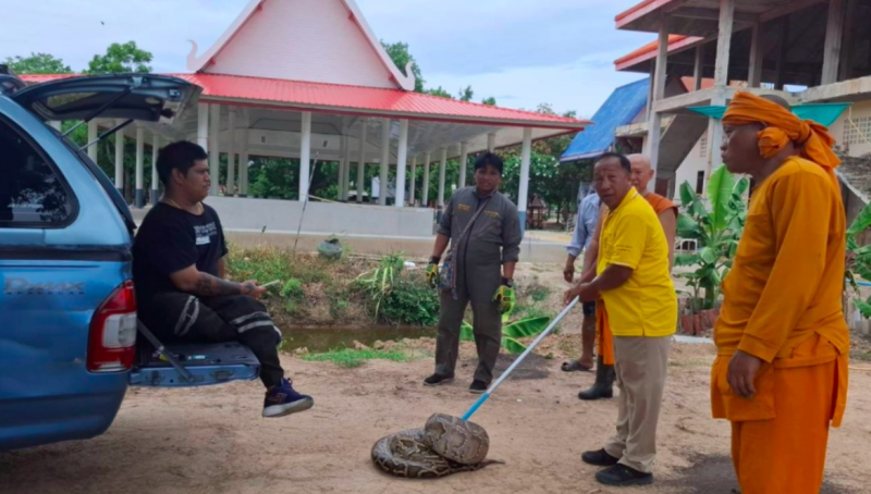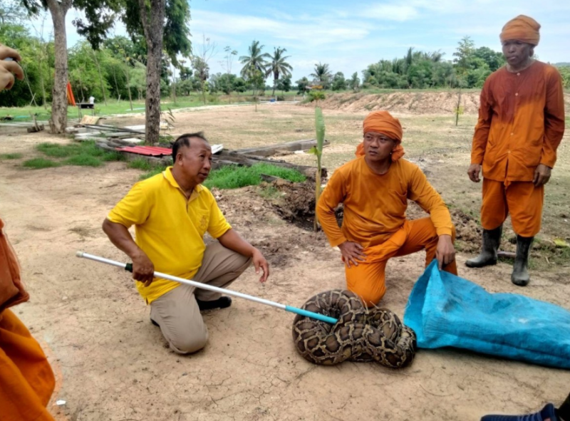 นายประคอง ทองมี ผู้ใหญ่บ้านหมู่ 4 ต.ห้วยกรด อ.สรรคบุรี (อาสาสมัครมูลนิธิร่วมกตัญญูชัยนาท) เปิดเผยว่า ได้รับแจ้งจาก พระครูโพธิชัยรังษี (ศรีนวล ฐิตสีโล) เจ้าอาวาสวัดดอนโพธิ์ศรี ให้ไปช่วยจับงู ซึ่งเป็นช่วงที่พระกำลังตัดหญ้าแล้วไปโดนหลังงูที่ซ่อนอยู่ใต้กอหญ้า มีขนาดลำตัวใหญ่มาก ด้วยความตกใจและกลัวว่าจะไปทำร้ายคนอื่น จึงให้นำทีมอาสาสมัครมูลนิธิร่วมกตัญญูพร้อมลูกข่ายลงพื้นที่ไปช่วยกันจับไปปล่อยสู่ป่าธรรมชาติ