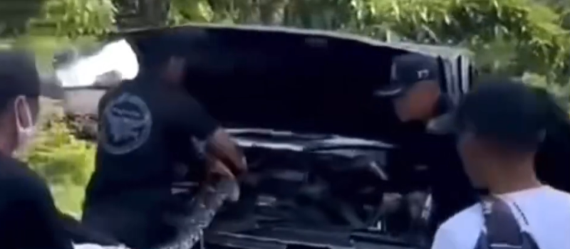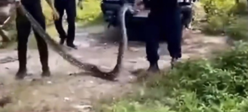 จากนั้นได้ร่วมกันกับเจ้าหน้าที่ตำรวจที่กำลังฝึกกันอยู่ ไปตรวจสอบ พบว่าในห้องเครื่องของรถยนต์กระบะในคดีอุบัติเหตุ ยี่ห้ออีซูซุ สีน้ำเงิน ทะเบียน บย 5977 มีงูเหลือมตัวใหญ่ นอนพันตัวอยู่ที่เครื่องยนต์ จึงช่วยกันดึงออกมาอย่างทุลักทุเล ท่ามกลางความกลัวงูของเจ้าหน้าที่ตำรวจบางคน