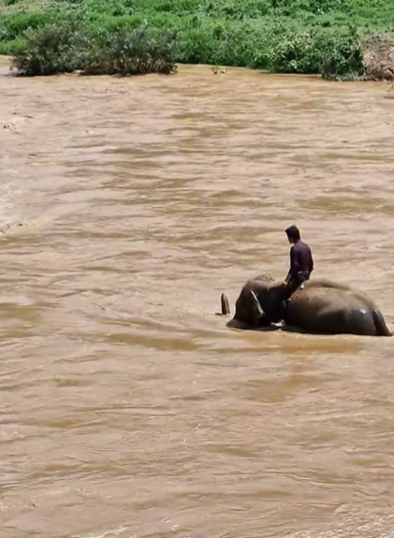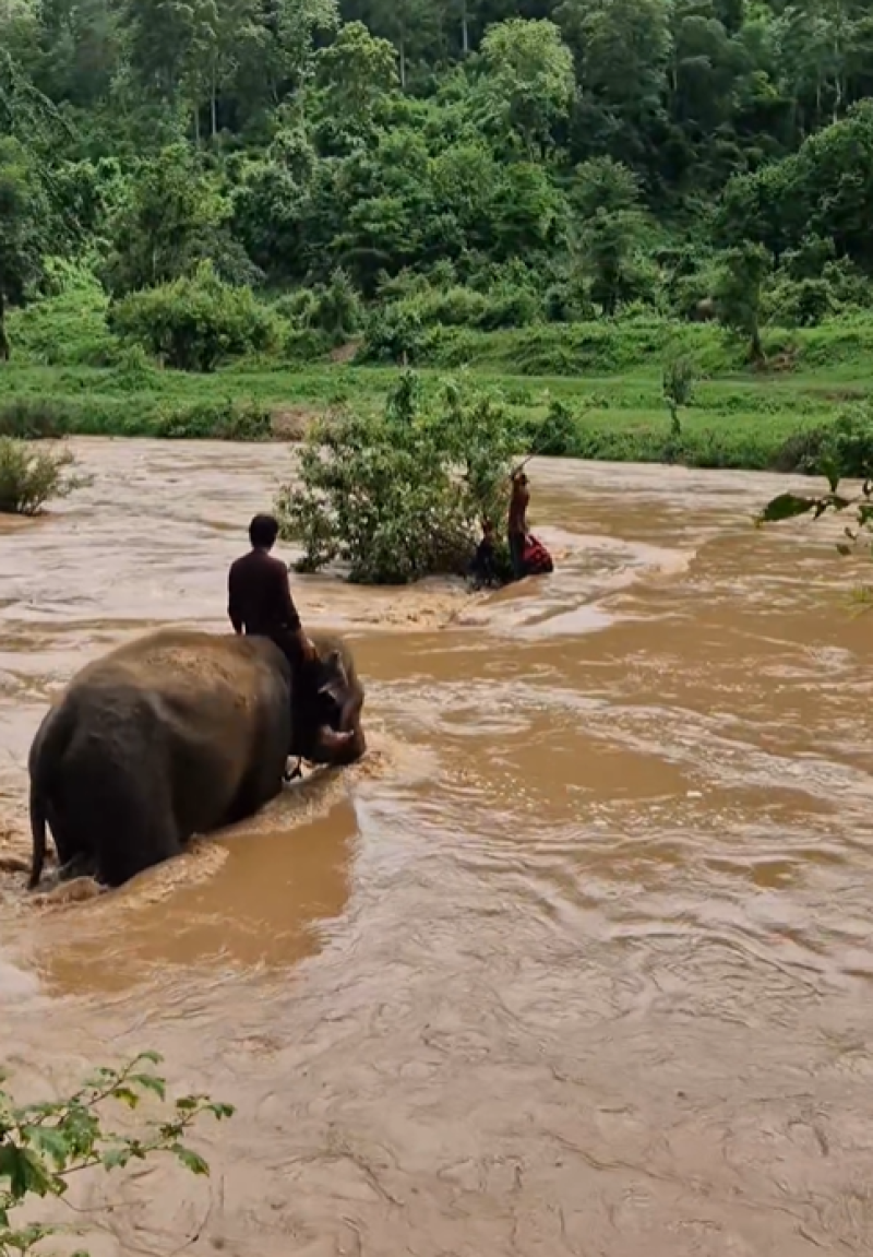 ทีมควาญช้างตระกูลแสน ควบช้างคู่ใจ ช่วยเหลือนักท่องเที่ยว แพ ล่ม