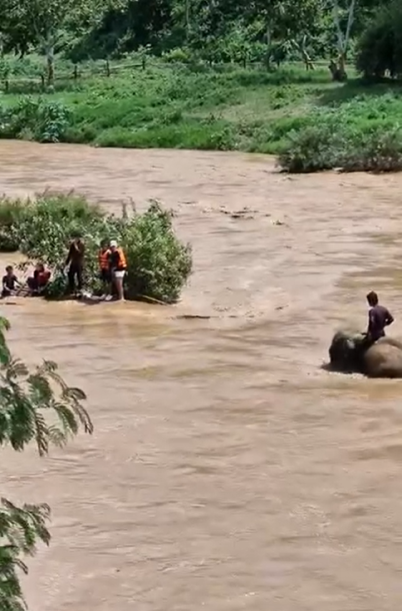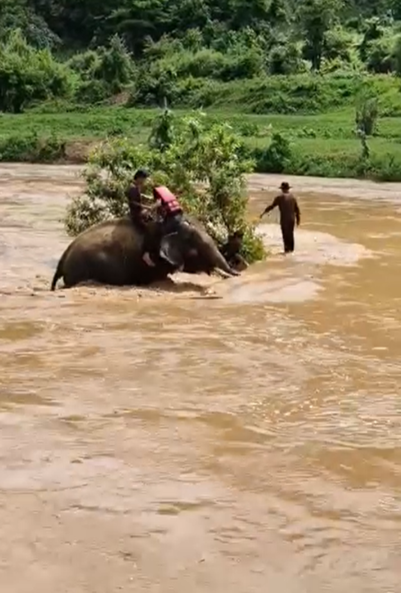ทีมควาญช้างตระกูลแสน เห็นเหตุการณ์ จึงได้ควบช้างคู่ใจ ช่วยเหลือได้ทันและปลอดภัย นักท่องเที่ยวประทับใจช้างและทีมควาญช้าง