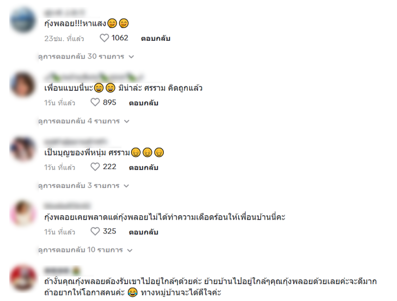 ตอนนี้เขาอยู่ชั้น 2 และได้รับการลงโทษของเขาเรียบร้อยแล้ว เราทำหน้าที่ของเพื่อนได้เท่านี้ ซัปพอร์ต ให้กำลังใจซึ่งกันและกัน เขาโดนด่าเยอะแล้ว ส่วนเราก็ได้ต่อว่าเขาไปแล้วนิดๆ หน่อยๆ ว่าต้องปรับเปลี่ยน แล้วก็เตือนสติ กุ้งพลอยให้โอกาสคน ให้โอกาสตัวเองและผู้อื่น เชื่อว่าเขาทำสามารถปรับเปลี่ยนตัวเองได้