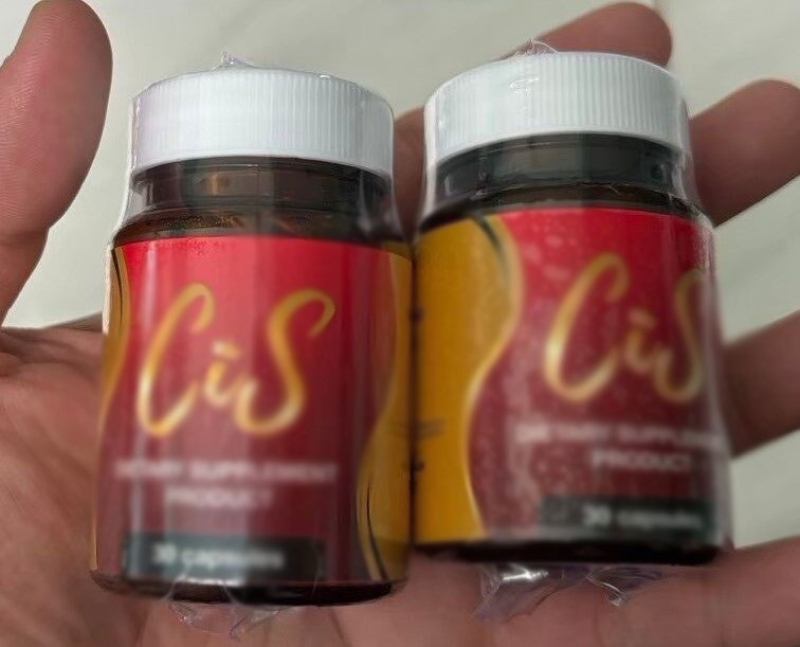 2. ผลิตภัณฑ์แคปซูลสีขาว-แดง บรรจุผงสีน้ำตาล บรรจุในขวดพลาสติกใสสีน้ำตาลปิดด้วยฝาเกลียวพลาสติกสีขาว ฉลากระบุ “CiS DIETARY SUPPLEMENT PRODUCT MANUFACTURED BY : CIS ส่วนประกอบ (Ingredient) ใน 1 แคปซูล ประกอบด้วย L- CARNITINE 100 สารสกัดจาก ผลส้มแขก ตะโกนา กระบองเพชร และโสมขาว DOSAGE : 1-2 เม็ด/ครั้ง บรรจุ 30 แคปซูล MFG : 25/3/67 EXP : 25/3/69”