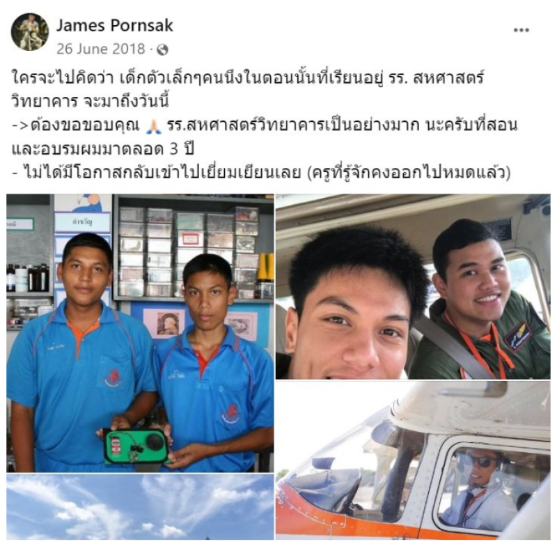 โดยหากย้อนไปในปี 2561 พบว่า ในขณะนั้นกัปตันเจมส์ อายุ 24 ปี มีการโพสต์ในกลุ่มศิษย์เก่าโรงเรียน สหศาสตร์วิทยาคาร อ.หาดใหญ่ จ.สงขลา ว่า ใครจะคิดว่าเด็กตัวเล็ก ๆ คนหนึ่งในตอนนั้น จะมีวันที่ได้เป็นนักบินได้ ต้องขอขอบคุณโรงเรียนนะครับที่สอนและอบรมผมมาตลอด 3 ปี ไม่ได้มีโอกาสกลับเข้าไปเยี่ยมเยียนเลย ครูที่รู้จักคงเกษียณออกไปหมดแล้ว