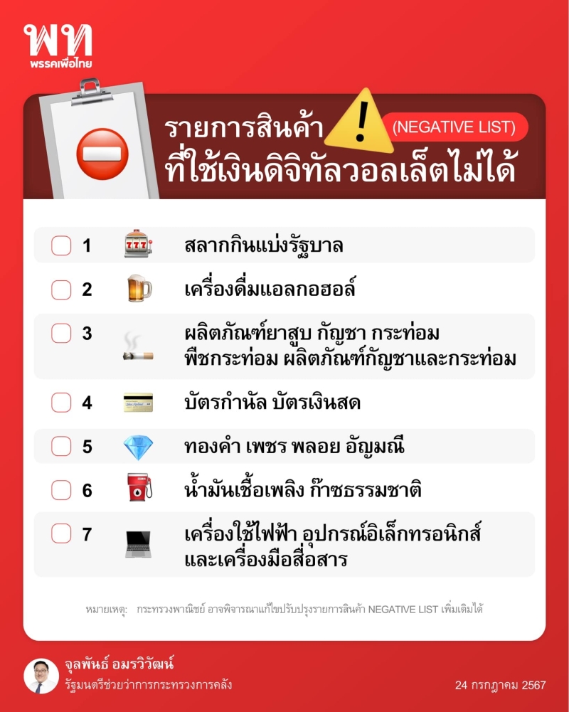 สินค้า 7 ประเภท ที่ไม่สามารถเข้าร่วมใช้จ่ายในโครงการได้ มีดังนี้