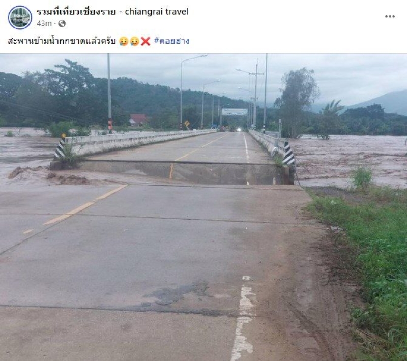 ล่าสุด รวมที่เที่ยวเชียงราย – chiangrai travel รายงานว่า สะพานข้ามน้ำกกขาดแล้วครับ ที่ดอยฮาง