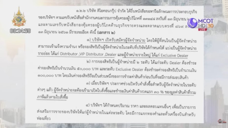 หลังจากได้รับการร้องเรียนจากประชาชน โดยตรวจสอบพบว่า มีการทำธุรกิจแบบผิดปกติ บริษัทดังกล่าวตั้งนิติบุคคลขึ้นมา วันที่ 1 มิ.ย.2561 มีกรรมการบริษัท 1 คน มีการยื่นหนังสือขอหารือการประกอบธุรกิจ วันที่ 13 มิ.ย. 61 แบบขายตรง