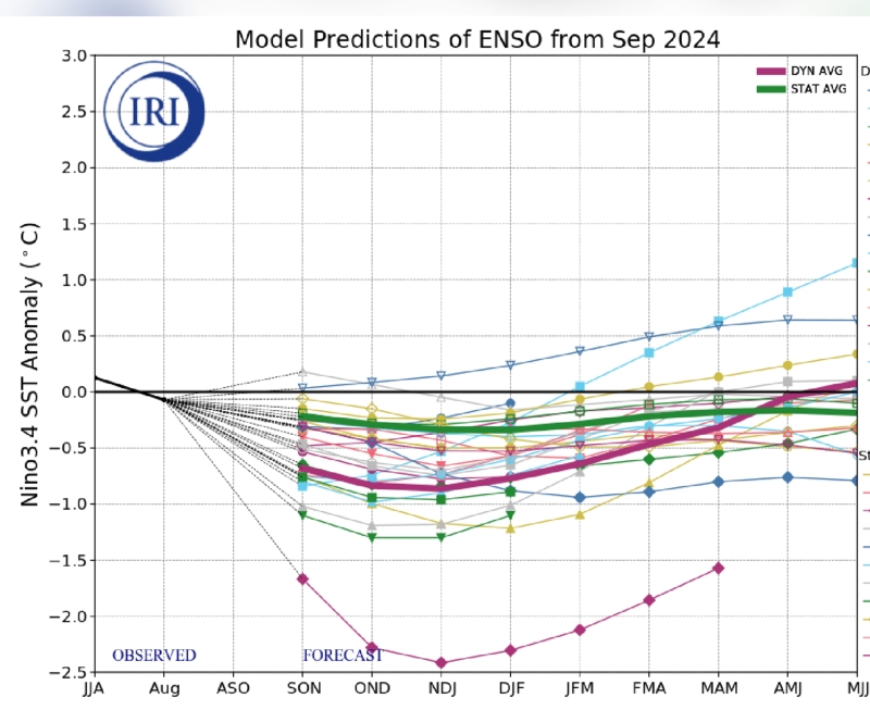 โดยคำทำนายบอกว่า ภาวะลานีญา น่าจะเกิดขึ้นในช่วง เดือนกันยายนถึงพฤศจิกายน โดยมีความน่าจะเป็น 60% และคาดว่าน่าจะลากนานไปถึงเดือนมกราคมถึงมีนาคมปีหน้า