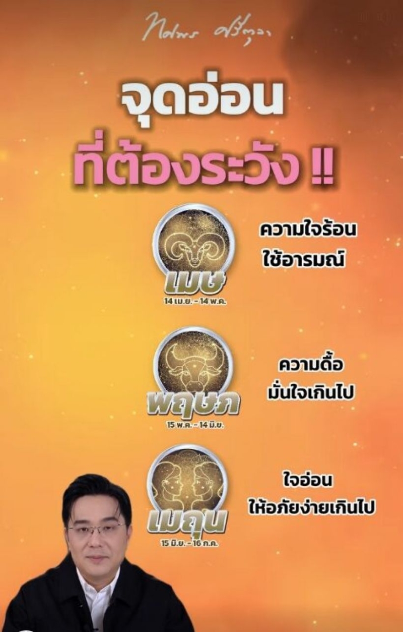 หมอช้าง เตือนระวัง 3 ราศี ราศีเมษ ราศีพฤษภ ราศีเมถุน