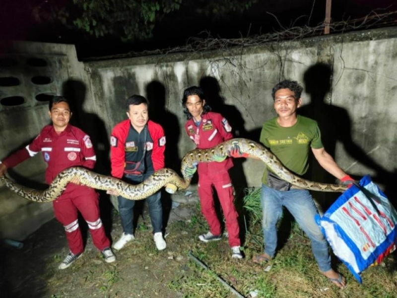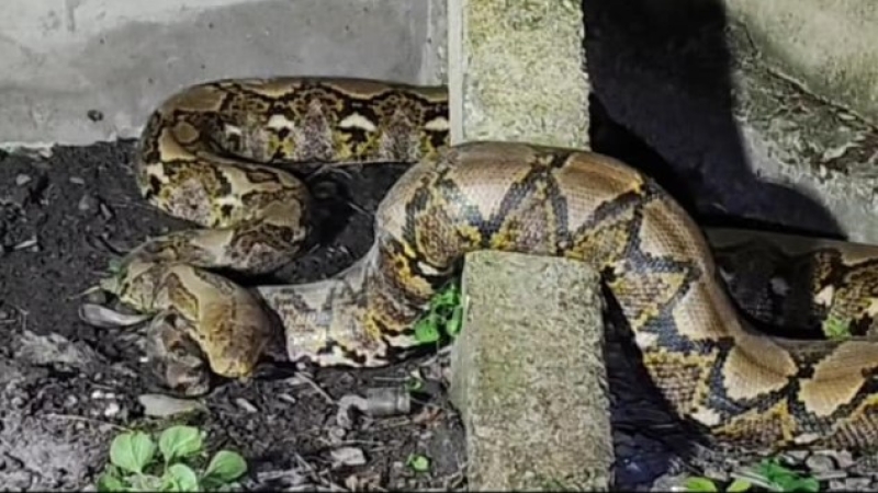 ด้าน นายวัลลภ เจ้าของบ้าน เล่าว่า ตนกำลังนอนหลับพักผ่อน ได้ยินเสียงสุนัขที่เลี้ยงเอาไว้เห่าส่งเสียงดัง โดยแม่สุนัขเพิ่งจะคลอดลูกออกมา จึงเชื่อว่าน่าจะมีสัตว์เลื้อยคลานเข้ามาในบ้านแน่ พอไปดูก็พบงูเหลือมยักษ์ ซุกตัวอยู่ริมกำแพง จึงรีบแจ้งเจ้าหน้าที่ให้มาจับไปปล่อยคืนธรรมชาติดังกล่าว