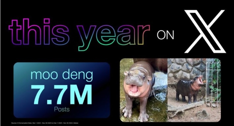 เรียกได้ว่า เป็นซุปตาร์ประเทศไทยจริงๆ สำหรับ หมูเด้ง ฮิปโปแคระ จากสวนสัตว์เปิดเขาเขียว จ.ชลบุรี ที่ดังมากๆทั้งในประเทศไทยและต่างประเทศ จนเกิดเป็นมีมตามๆมา ล่าสุด หมูเด้งได้คว้ารางวัล มีมแห่งปี 2024” จากแพลตฟอร์ม X ด้วยสถิติ 7.7 ล้านโพสต์ หลังสร้างปรากฏการณ์ความน่ารัก จนคำว่า Moo Deng กลายเป็นที่พูดถึงระดับโลกในช่วงปี 2024 ที่ผ่านมา