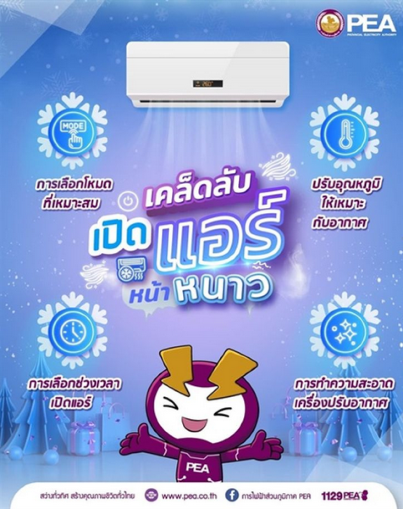 การไฟฟ้าส่วนภูมิภาคเปิดเผยข้อมูลเคล็ดลับเปิดแอร์หน้าหนาว โดยมีการแนะนำเกี่ยวกับการเลือกโหมดแอร์ที่เหมาะสม โดยมีรายละเอียดังนี้