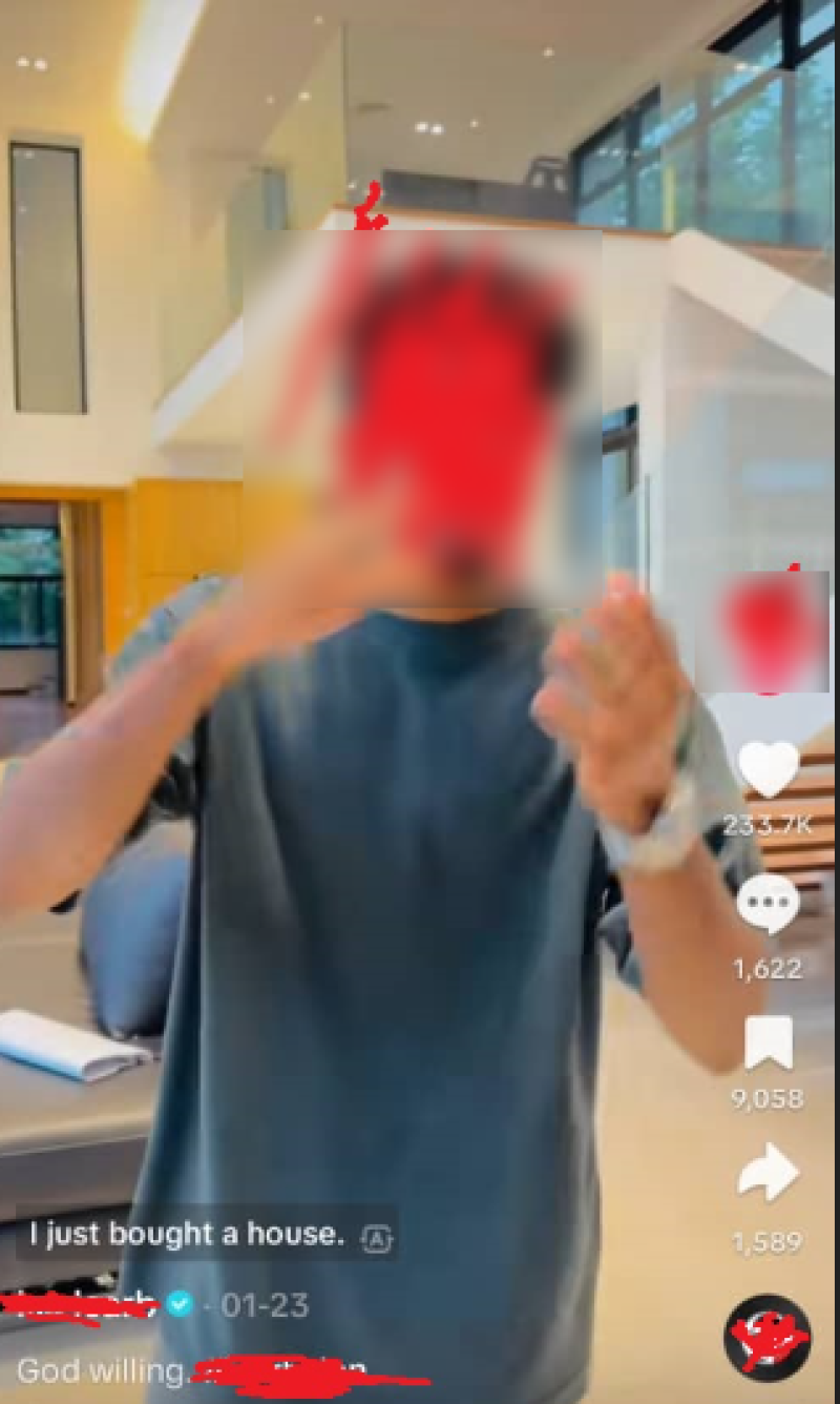แต่ยูทูบเบอร์รายดังกล่าวกลับประกาศลงคลิปว่าได้ซื้อคฤหาสน์หลังนี้มาในราคา 9.7 ล้านริงกิต (ประมาณ 73.2 ล้านบาท) แถมยังโชว์ภาพตอนนำเงินไปให้ผู้หญิงที่มีลักษณะคล้ายนายหน้า แถมตอนที่เซ็นเอกสารก็ยังคุยโว ว่าความสำเร็จของตนเองจะกลายเป็นแรงบันดาลใจให้คนหนุ่มสาว ก้าวไปสู่ความสำเร็จเช่นกัน