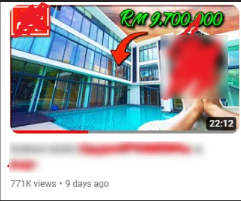 เว็บไซต์ต่างประเทศ รายงานว่า ที่ประเทศมาเลเซีย นายหน้าอสังหาริมทรัพย์รายหนึ่ง ได้ออกมาแฉความลับของยูทูบเบอร์ดังผู้ติดตามหลักล้านซับ ที่อ้างว่าตัวเองเพิ่งจะซื้อคฤหาสน์หรูมูลค่า 9.7 ล้านริงกิต (ประมาณ 73.2 ล้านบาท) โดยหวังว่าความสำเร็จนี้จะสร้างแรงบันดาลใจแก่คนอื่นต่อไป