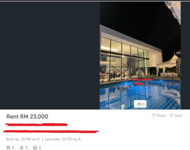 อิซ่า นายหน้าอสังหาริมทรัพย์ที่ออกมาเผยข้อมูล กล่าวว่า หลังตรวจสอบกับเพื่อนร่วมงาน ทำให้ทราบว่าคฤหาสน์ดังกล่าวยังไม่ถูกขาย เจ้าของบ้านตั้งราคาอยู่ที่ 9.8 ล้านริงกิต (ประมาณ 73.9 ล้านบาท) แต่ก็ยังไม่มีใครซื้อ ปัจจุบันคฤหานส์หลังนี้จึงปล่อยเช่าเพียงอย่างเดียว