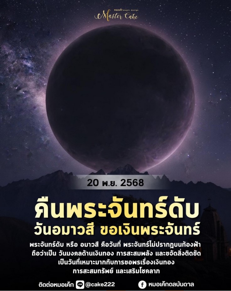 หมอเค้กดลบันดาล ได้ออกมาเผย วันพระจันทร์ดับ (อมาวสี) วันที่ 20 พ.ย. 2568