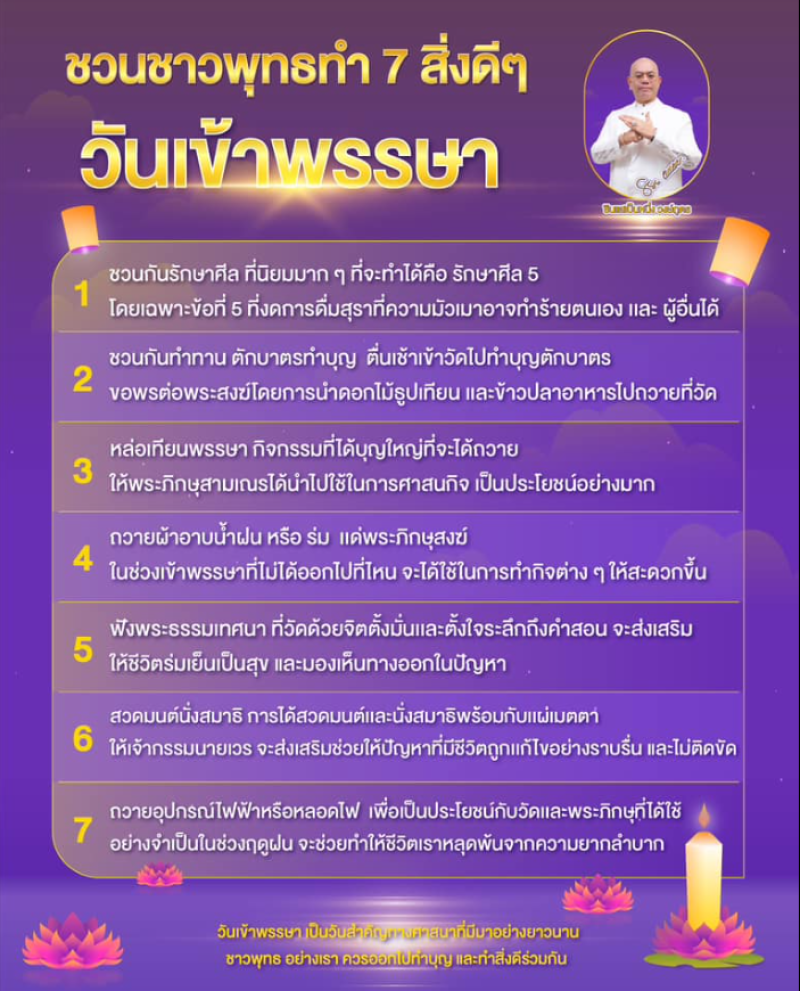 วันที่ 19 มิ.ย. 67 ด้านอาจารย์เป็นหนึ่ง หรือ ซินแสเป็นหนึ่ง วงษ์ภูดร ซึ่งเป็นซินแสชื่อดังในประเทศไทย และก็มีหลายๆคนรู้จักดี ได้เผย7 สิ่งดีๆที่ต้องทำใน วันเข้าพรรษา