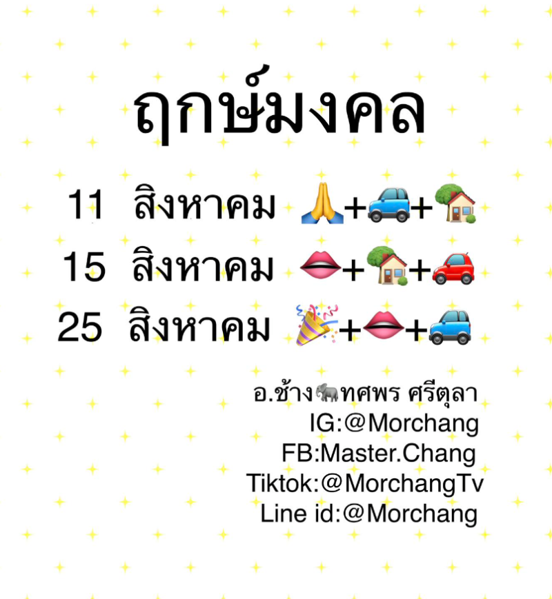 โดย หมอช้าง ทศพร ศรีตุลา นักพยากรณ์ชื่อดัง ได้โพสต์ฤกษ์มงคล เดือนนี้ ผ่านทางเฟซบุ๊ก Master.Chang สำหรับใครที่มีแพลนจะออกรถใหม่ ขึ้นบ้านใหม่ หรือจัดงานมงคลในเดือนนี้