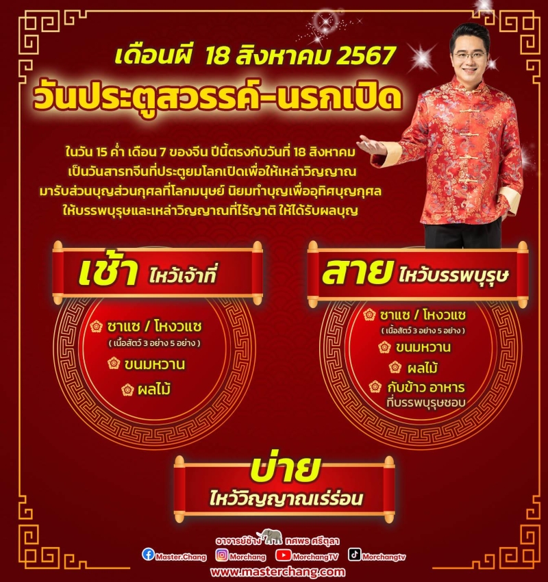 โดย หมอช้าง ทศพร ศรีตุลา เตือนวันสารทจีน เดือนผี 18 ส.ค. 2567