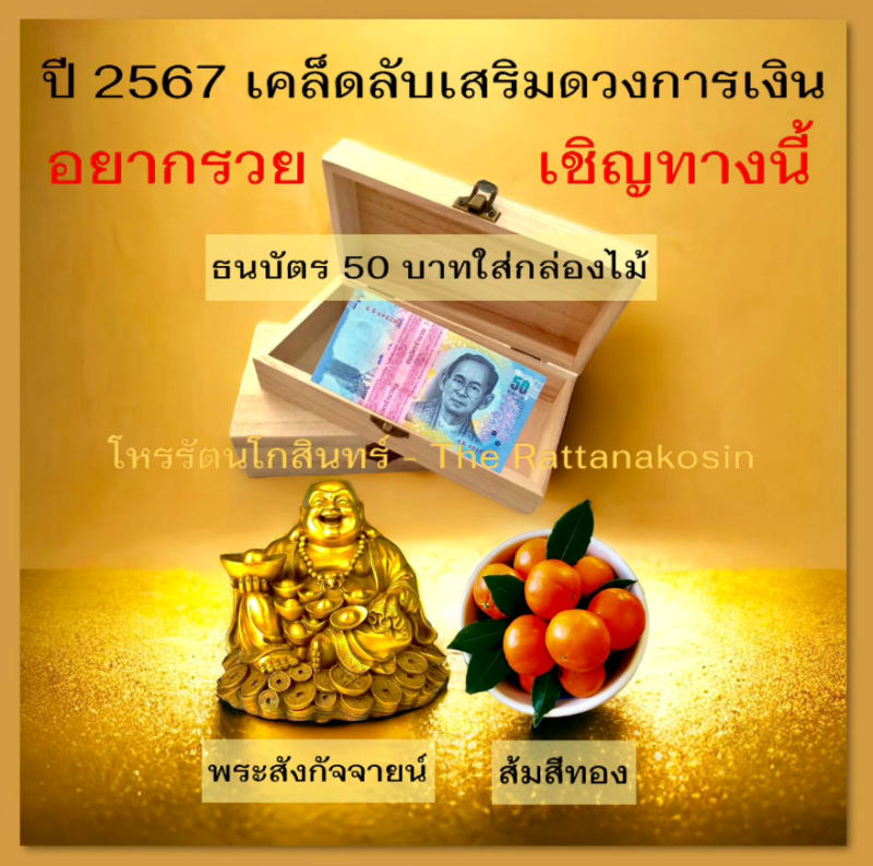 1.ข้าราชการและพนักงานประจำ ใส่ธนบัตร 50 บาทในกล่องไม้ วางไว้ที่หิ้งพระ หรือมุมซ้ายมือด้านในสุดของห้อง.. หมั่นเติมเงินสม่ำเสมอ เมื่อเต็มแล้วแบ่งไปทำบุญให้วิญญาณบรรพบุรุษ จะเป็นที่รักของผู้ใหญ่ และมีโชคดีเรื่องการเงินตลอดทั้งปี