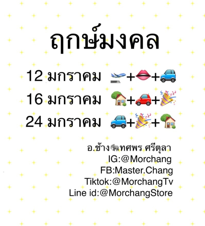 โดย หมอช้าง ทศพร ศรีตุลา นักพยากรณ์ชื่อดัง ได้โพสต์ฤกษ์มงคล เดือนนี้ ผ่านทางเฟซบุ๊ก Master.Chang สำหรับใครที่มีแพลนจะออกรถใหม่ ขึ้นบ้านใหม่ หรือจัดงานมงคลในเดือนนี้