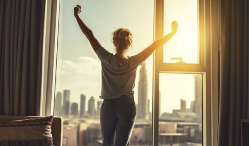 ตื่นนอนแล้วดื่มน้ำอุ่นสักแก้ว เพื่อกระตุ้นระบบย่อย และ การเผาผลาญ หลังจากนั้นเปิดม่านรับแสงเช้า หรือเดินออกไปรับแดดอ่อนๆ แสงธรรมชาติจะช่วยปรับนาฬิกาชีวิต และบอกสมองว่า ถึงเวลาเริ่มวันใหม่