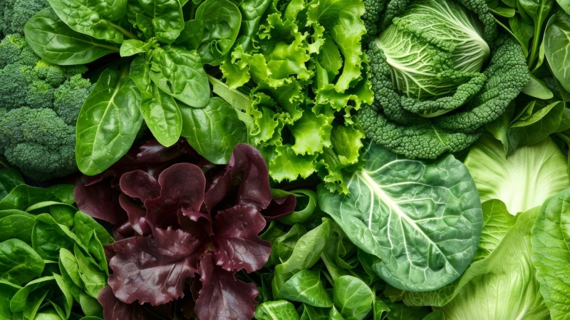 อีกกลุ่มที่ไม่ควรมองข้าม คือ ผักใบเขียวเข้ม อัดแน่นด้วยวิตามิน แร่ธาตุ และสารต้านอนุมูลอิสระ ผู้เชี่ยวชาญแนะนำให้บริโภคผักหลากหลายชนิดในปริมาณเพียงพอทุกวัน โดยเน้นผักสีเขียวเป็นส่วนสำคัญของจานอาหาร
