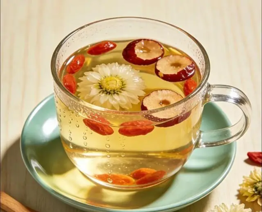 วิธีทำ: ใช้เก๋ากี้ ดอกเก๊กฮวยขาว และพุทราจีน 2-3 ลูก ชงด้วยน้ำร้อนอุณหภูมิประมาณ 80 องศาเซลเซียส