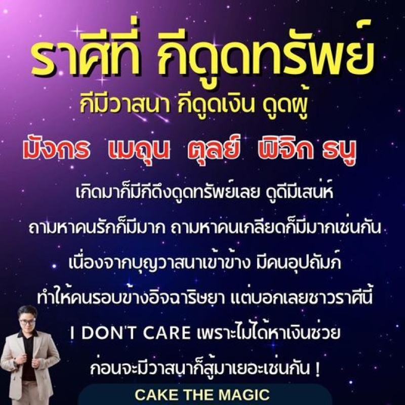 หมอเค้ก Magic stone ได้ ดูดวงของชาว 5 ราศี ราศีที่กีดูดทรัพย์ กีมีวาสนา ดูดเงิน ดูดผู้ได้ มี 5 ราศีโดยหมอเค้ระบุอีกว่า เกิดมาก็มีกีดูดทรัพย์เลย ดูดีมีเสน่ห์ ถามหาคนรักก็มีมาก ถามหาคนเกลียดก็มีมากเช่นกัน เนื่องจากบุญวาสนาเข้าข้าง มีคนอุปถัมภ์ ทำให้คนอิจฉาริษยา แต่บอกเลยชาวราศีนี้ i don’t care เพราะไม่ได้หาเงินช่วย ก่อนมีวาสนาก็สู้มาเยอะเช่นกัน