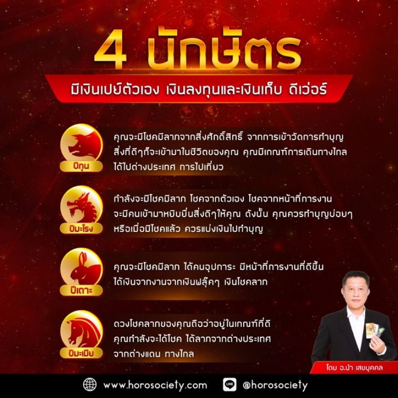 เมื่อวันที่ 13 มี.ค. 67 ที่ผ่านมา นักดูดวงชื่อดัง อย่าง อ.นำ เสขบุคคล โดยเพจ ดูดวงไพ่เทพนิมิต โดย อ.นำ เสขบุคคล ได้ทำนาย 4 ปีนักษัตรที่กำลังจะมีเงิน มีโชคมีลาภ
