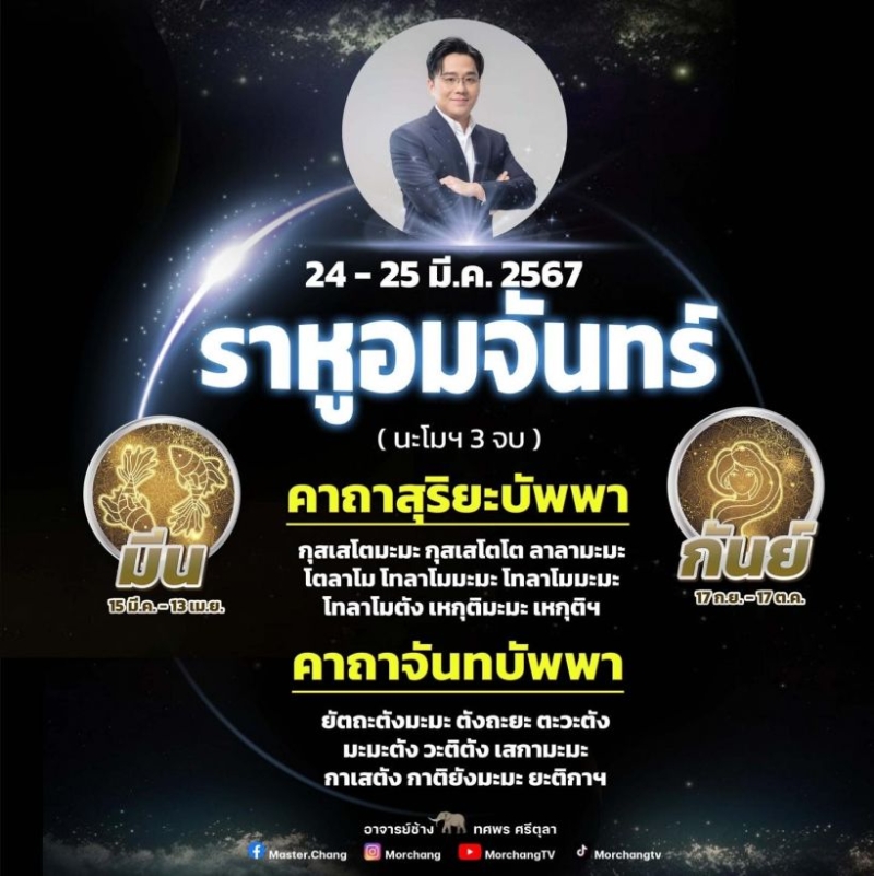 เมื่อวันที่ 22 มีนาคม เพจ หมอช้าง ได้โพสต์เตือนล่วงหน้า ผู้เกิดในราศีทั้ง 2 ราศีนี้ ระวัง! อุบัติเหตุ-ปัญหาสุขภาพ ระบุว่า "คืนวันที่ 24-25 มีนาคมนี้ มีปรากฏการณ์จันทรุปราคา (ราหูอมจันทร์) ส่งผลกระทบต่อผู้ที่เกิดใน ราศีมีนและราศีกันย์ ต้องระวังปัญหาสุขภาพและอุบัติเหตุ"