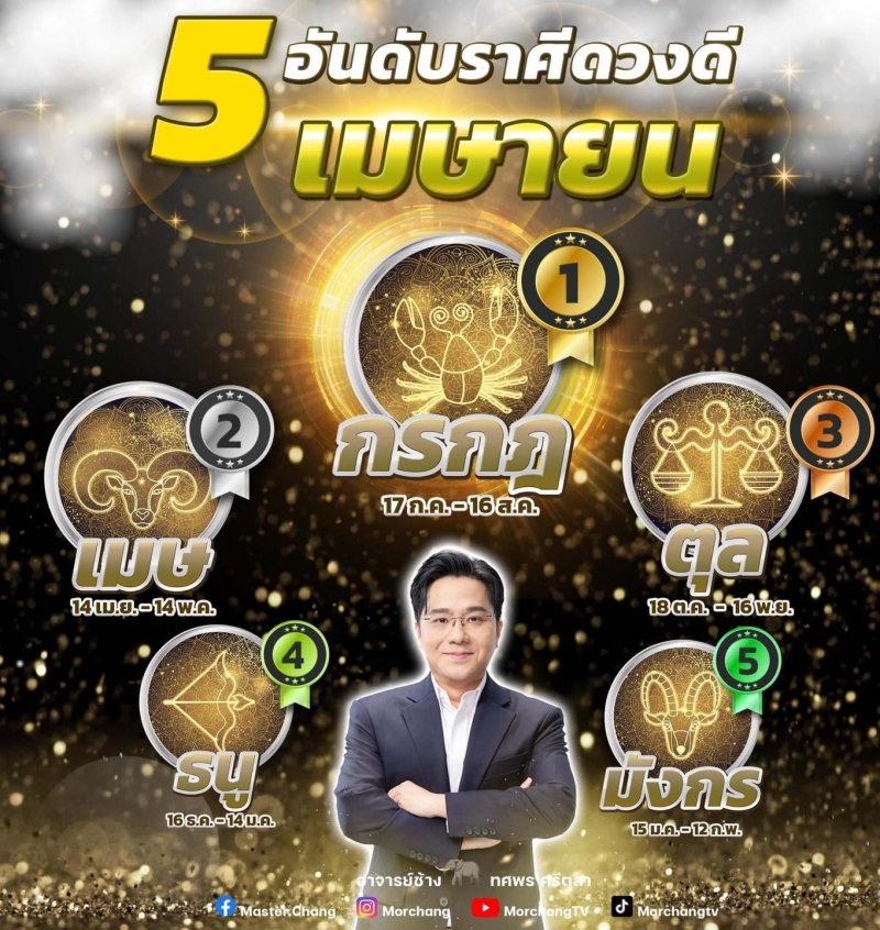 วันที่ 1 เมษายน 67 ที่ผ่านมา หมอช้าง ทศพร ศรีตุลา เผยถึงดวงชะตา 5 ราศี ดวงดี ประจำเดือน เมษายน 2567