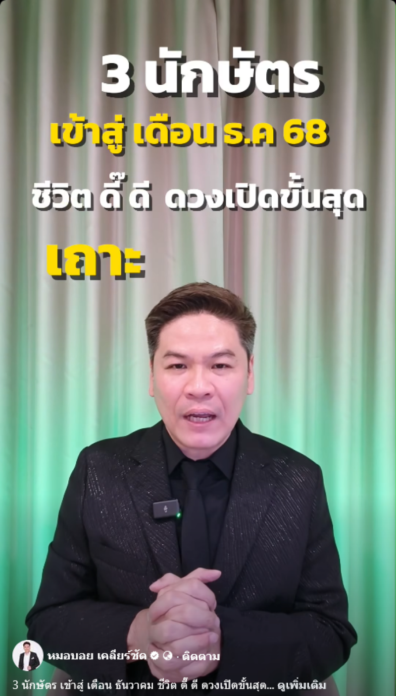 นักพยากรณ์ดังอย่าง หมอบอย เคลียร์ชัด ทำนายดวง 3 นักษัตร เข้าสู่เดือนธันวาคม 2568 ชีวิตดี๊ดี ดวงเปิดขั้นสุด เข้าสู่เดือนธันวาคม ส่งท้ายปี ประตูดวงกำลังจะเปิด ผ่านอะไรมามากมาย ความดีและความสำเร็จจะส่งผล ทั้งงานดี เงินไหลมาเทมา ความรักฟื้นตัว