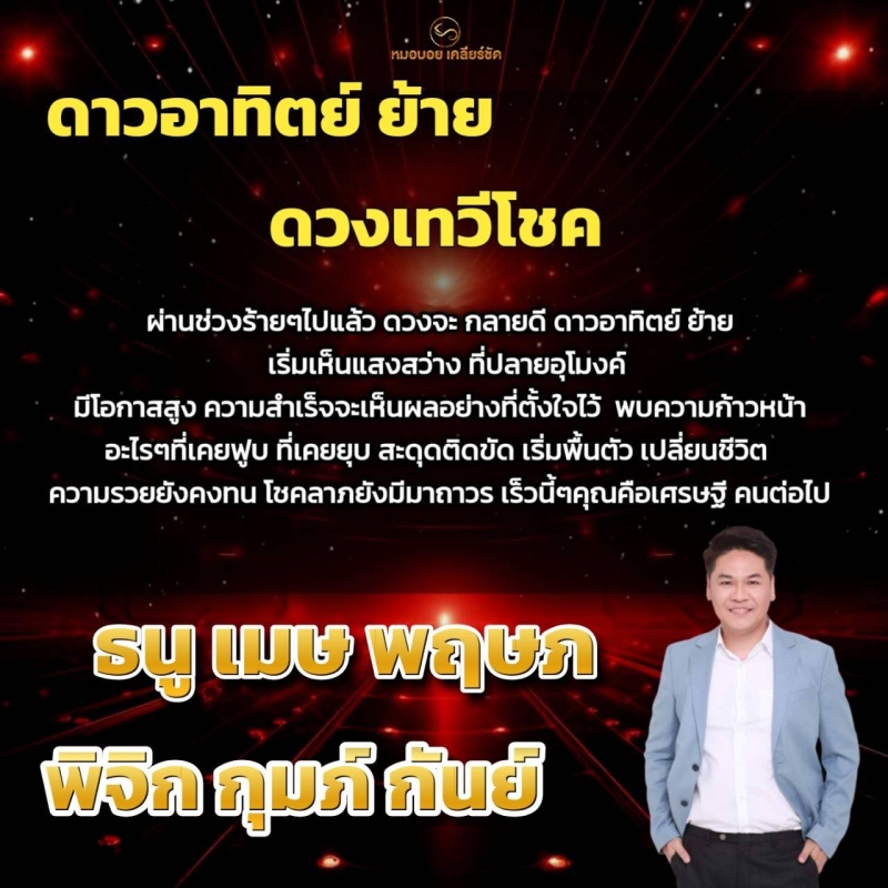 วันที่ 16 ธ.ค. 68 ทาง หมอบอย เคลียร์ชัด เปิด 6 ราศี ดาวอาทิตย์ ย้าย ดวงเทวีโชค ผ่านช่วงร้ายๆไปแล้ว ดวงจะ กลายดี ดาวอาทิตย์ ย้าย เริ่มเห็นแสงสว่าง ที่ปลายอุโมงค์ มีโอกาสสูง ความสําเร็จจะเห็นผลอย่างที่ตั้งใจไว้ พบความก้าวหน้า อะไรๆที่เคยฟูบ ที่เคยยุบ สะดุดติดขัด เริ่มฟื้นตัว เปลี่ยนชีวิต ความรวยยังคงทน โชคลาภยังมีมาถาวร เร็วนี้ๆคุณคือเศรษฐี คนต่อไป