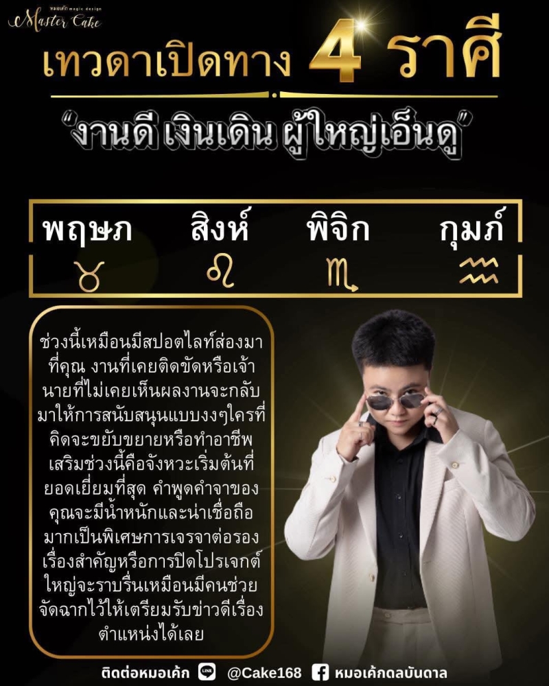 เรียกได้ว่า ดวงชะตากำลังพลิกเป็นบวก เมื่อ หมอเค้ก ออกมาพยากรณ์ 4 ราศีดวงเฮงช่วงนี้ เทวดาเปิดทางเต็มที่ ทั้งเรื่องงาน เงิน และแรงหนุนจากผู้ใหญ่แบบเห็นได้ชัด