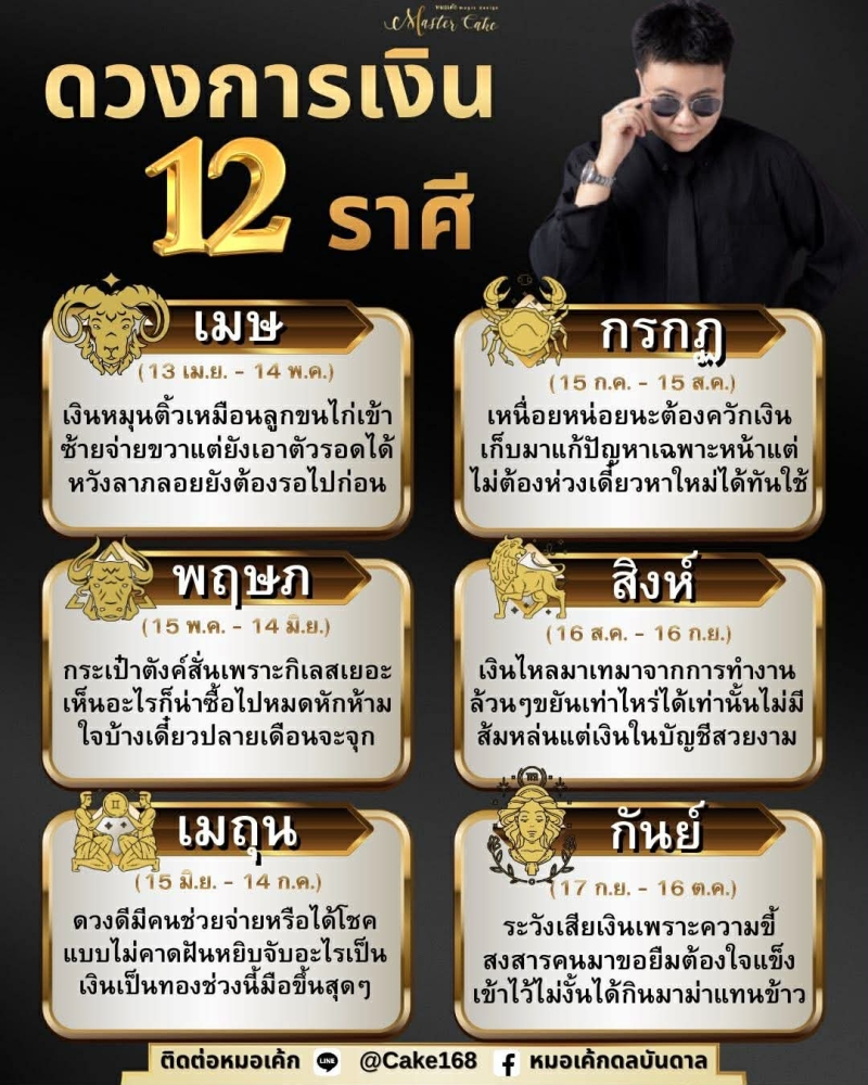 ดวงการเงิน 12 ราศี โดย หมอเค้กดลบันดาล เผยว่า ช่วงนี้มีทั้งราศีเงินเข้าแรง และราศีที่ต้องคุมรายจ่ายให้ดี
