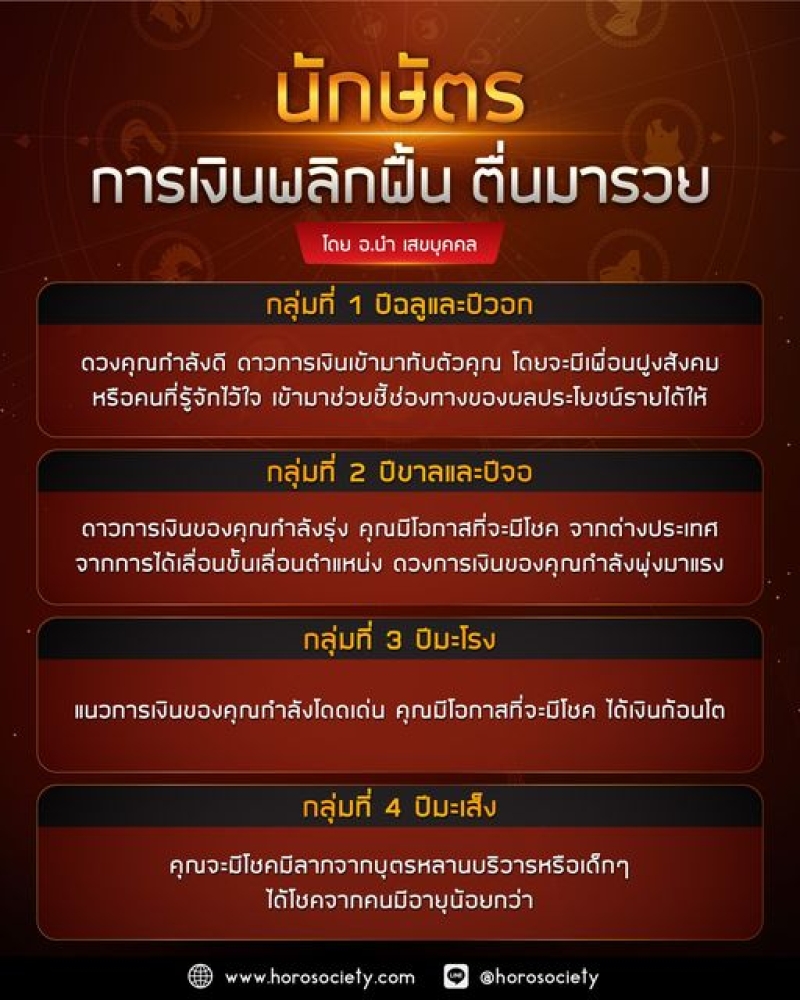กลุ่มที่ 3 ปีมะโรง แนวการเงินของคุณกำลังโดดเด่น คุณมีโอกาสที่จะมีโชค ได้เงินก้อนโต