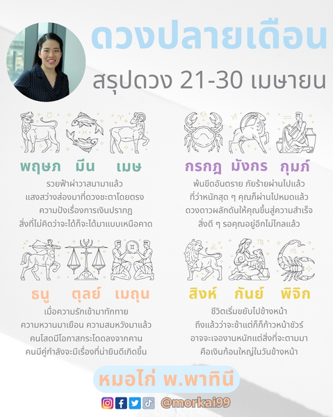 ล่าสุดนักพยากรณ์ดัง หมอไก่ พ.พาทินี ได้ทำนายดวง 12 ราศี สรุปดวงช่วง 21-30 เมษายน 2569 พบมี 3 ราศี รวยฟ้าผ่า วาสนามาแล้ว แสงสว่างส่องมาที่ดวงชะตาโดยตรง ความปังเรื่องการเงินปรากฏ