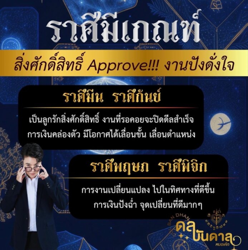 หมอเค้กMagic Design เปิดชะตา 4 ราศีมีเกณฑ์สิ่งศักสิทธิ์ Approve งานปังดังใจ รักปัง เงินปังยังไม่พอ งานปังอีก รายได้เข้ารัวๆทำธุรกิจก้าวหน้า ผลกำไรงอกเงย ได้แก่ ราศีมีน ราศีกันย์ เป็นลูกรักสิ่งศักสิทธิ์ งานที่รอคอยจะปิดดีลสำเร็จ การเงินคล่องตัว มีโอกาสได้เลื่อนขั้น เลื่อนตำแหน่ง