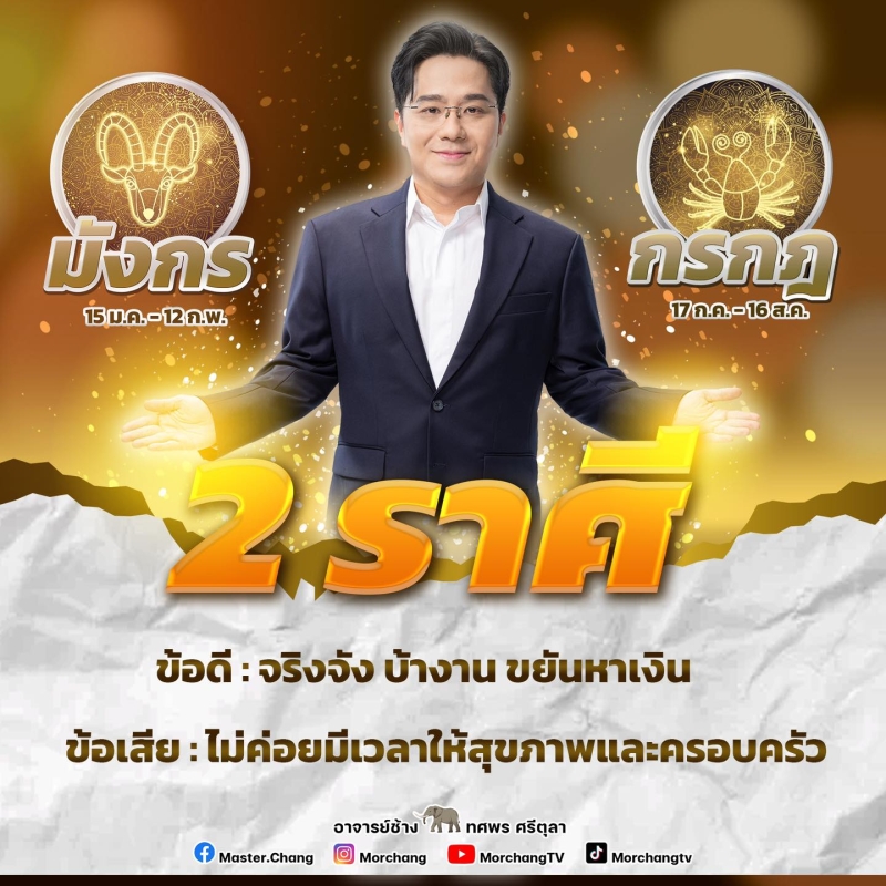 เมื่อวันที่ 3 มิ.ย. 2567 ที่ผ่านมา หมอช้าง ทศพร ศรีตุลา เผยคำทำนาย 2 ราศี เป็นราศีจริงจังบ้างานขยันหาเงิน