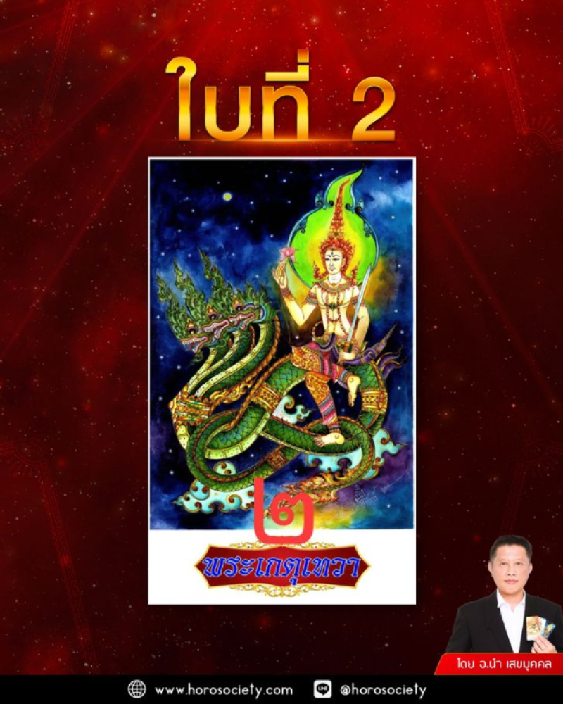ใบที่ 2 ให้ทำบุญเกี่ยวกับการบริจาคหนังสือธรรมะหนังสือสวดมนต์ ถวายพระไตรปิฎก ถวายสังฆทาน หรือผ้าไตรจีวร จะส่งผลทำให้คุณมีความโดดเด่นในหน้าที่การงานพ้นจากเคราะห์ภัยอันตราย หรือคดีความต่างๆ ทำให้คุณมีชีวิตที่ดีขึ้น