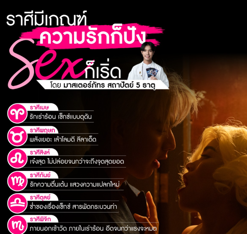 วันที่ 18 มิถุยายน 67 ที่ผ่านมา ทาง มาสเตอร์ภัทร สถาปัตย์ 5 ธาตุ หมอดูชื่อดังอีกหนึ่ง ได้ออกมาทำนายราศีมีเกณฑ์ ความรักก็ปัง Sex ก็เริ่ด จะมีราศีไหนบ้างไปดูกันเลย