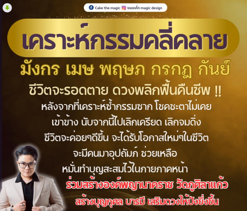 หมอเค้ก Magic Design เผยถึงดวงชะตา ชีวิตจะรอดตาย ดวงพลิกฟื้นคืนชีพ หลังจากที่เคราะห์ซ้ำกรรมซาก โชคชะตาไม่เคยเข้าข้าง นับจากนี้ไปเลิกเครียด เลิกจมดิ่ง ชีวิตจะค่อยๆ ดีขึ้น จะได้รับโอกาสๆ ในชีวิต จะมีคนมาอุปถัมภ์ช่วยเหลือ
