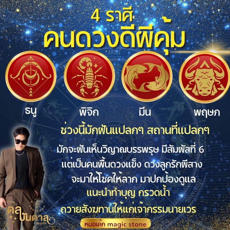 หมอเค้กMagic stone เผยถึงดวง 4 ราศี คนดวงดีผีคุ้ม ช่วงนี้มักฝันแปลกๆ สถานที่แปลกๆ มักจะฝันเห็นวิญญาณ มีสัมผัสที่ 6 แต่เป็นคนพื้นดวงแข็ง ดวงลูกรักผีสาง จะมาให้โชคให้ลาภ มาปกป้องดูแล เป็นคนพื้นดวงแข็ง ดวงลูกรักผีสาง จะมาให้โชคให้ลาภ มาปกป้องดูแล แนะนำให้ทำบุญ กรวดน้ำ ถวายสังฆทานให้เจ้ากรรมนายเวร