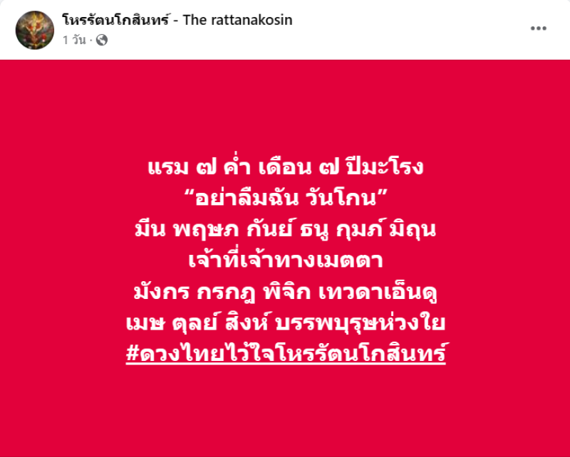 เมื่อวันที่ 28 มิ.ย. 67 ที่ผ่านมา ทางเพจ โหรรัตนโกสินทร์ - The rattanakosin ได้ทำนายทายทักดวงชะตาในช่วงนี้ พบ 6 ราศี เจ้าที่เจ้าทางเมตตา 3 ราศี เทวดาเอ็นดู วันนี้นี้วันโกน พรุ่งนี้วันพระ เจ้าที่เจ้าทาง สิ่งศักดิ์สิทธิ์อาจให้คุณให้โชคเป็นพิเศษ