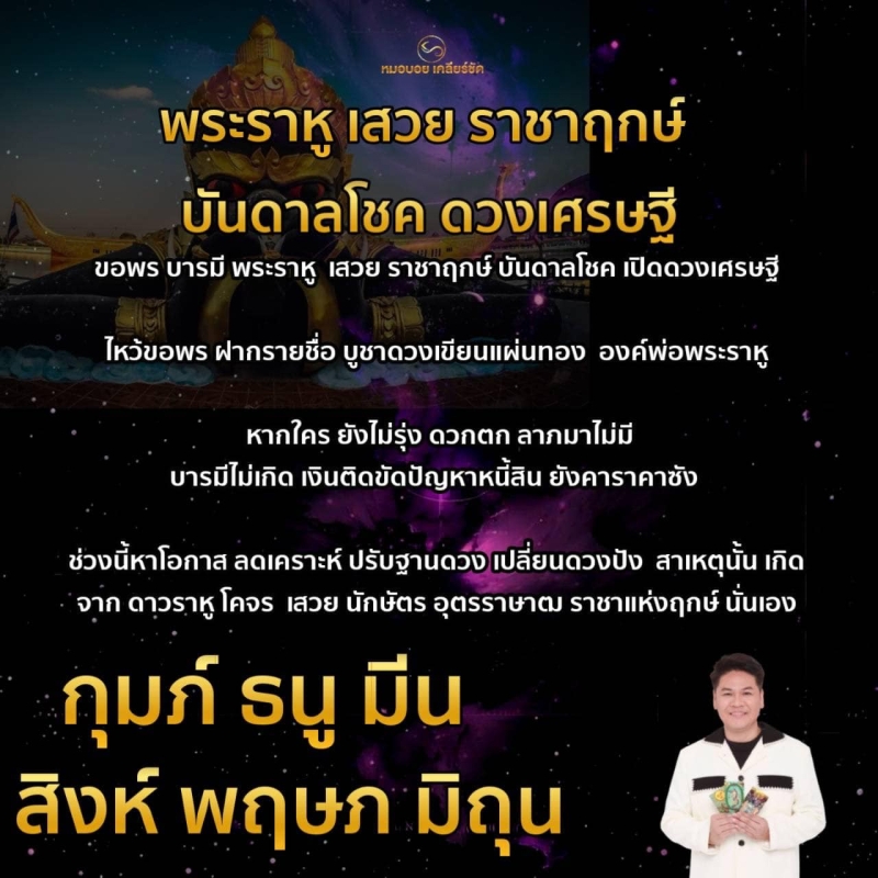 พระราหู เสวย ราชาฤกษ์ บันดาลโชค ดวงเศรษฐี ขอพร บารมี พระราหู เสวย ราชาฤกษ์ บันดาลโชค เปิดดวงเศรษฐี ไหว้ขอพร ฝากรายชื่อ บูชาดวงเขียนแผ่นทอง องค์พ่อพระราหู หากใคร ยังไม่รุ่ง ดวกตก ลาภมาไม่มี บารมีไม่เกิด เงินติดขัดปัญหาหนี้สิน ยังคาราคาซัง ช่วงนี้หาโอกาส ลดเคราะห์ ปรับฐานดวง เปลี่ยนดวงปัง สาเหตุนั้น เกิด จาก ดาวราหู โคจร เสวย นักษัตร อุตรราษาฒ ราชาแห่งฤกษ์ นั่นเอง
