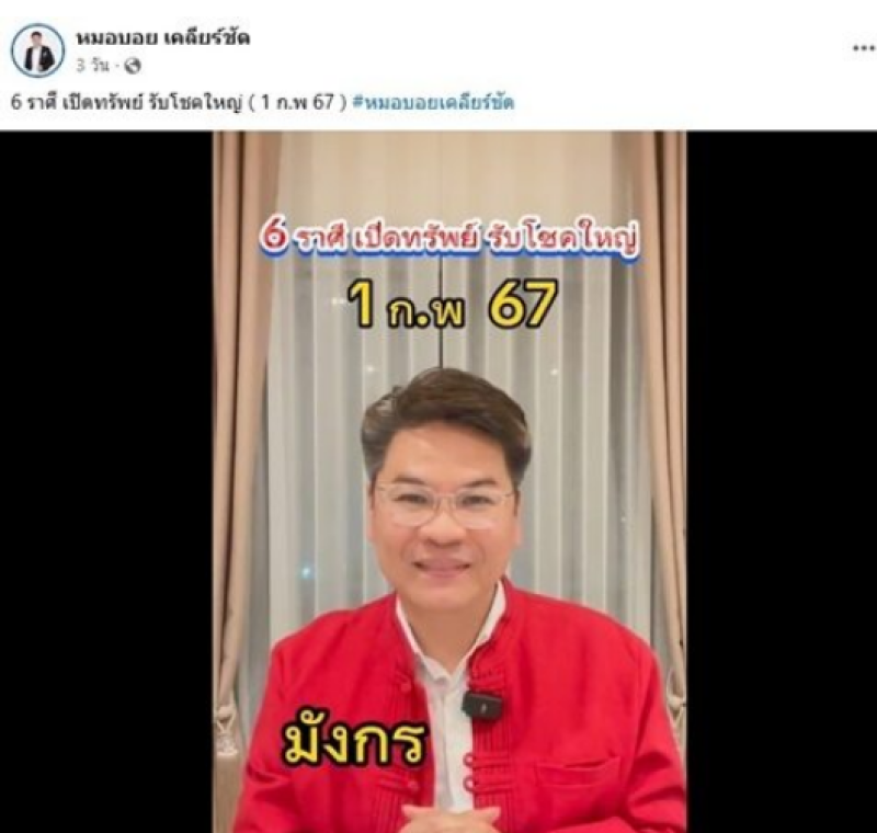 จากกรณี หมอบอย เคลียร์ชัด เปิดดวงรับเดือนใหม่ กุมภาพันธ์ เผย 6 ราศี เปิดทรัพย์ รับโชคใหญ่ (1 ก.พ 67)