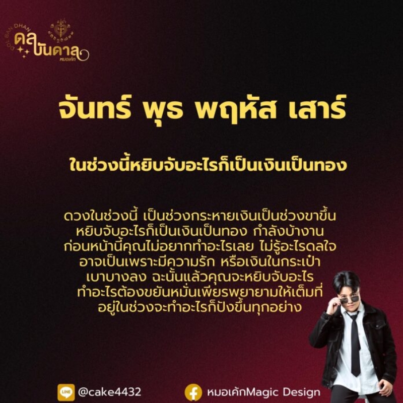 หมอเค้ก Magic stone เปิดดวงวันเกิดคนที่เกิด วันจันทร์ วันพุธ วันพฤหัส วันเสาร์ ในช่วงนี้หยิบจับอะไรก็ปังไปหมด เพราะคุณเป็นคนเก่ง ในช่วงนี้หยิบจับอะไรเป็นเงินเป็นทอง ดวงในช่วงนี้ เป็นช่วงกระหายเงินเป็นช่วงขาขึ้น หยิบจับอะไรเป็นเงินเป็นทอง กำลังบ้างาน ก่อนหน้านี้คุณไม่อยากทำอะไรเลย